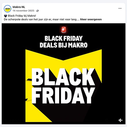 Black friday bij Makro in 2026 begint op woensdag 4 november 2026 en duurt tot 19 december 2026.