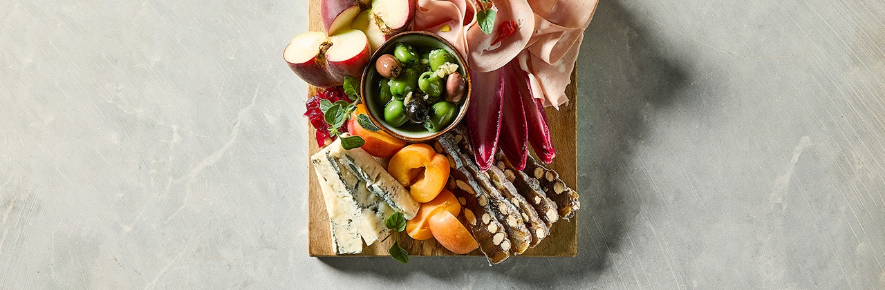 Begin met het kiezen van verschillende soorten vleeswaren. Dan kun je denken aan serranoham, mortadella of prosciutto. Reken ongeveer op 55 gram per persoon, tenzij je prosciutto serveert. De ervaring leert ons dat je gasten dat gewoon door blijven eten, dus dan mag het gerust een paar grammetjes meer zijn.