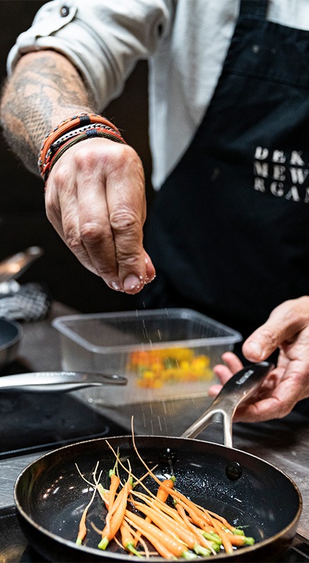 Edwin Vinke is chef-kok van restaurant De Kromme Watergang in het Zeeuwse Sluis. Met de pannen uit de Geneva-collectie van GreenPan creëert hij zijn iconische gerechten, geïnspireerd op de directe omgeving van het restaurant. “In een restaurantkeuken draait alles om kwaliteit. Hoe goed je kookt, hangt af van de ingrediënten, maar ook van het materiaal. De pannen van GreenPan zijn PFAS-vrij en van professionele kwaliteit.”