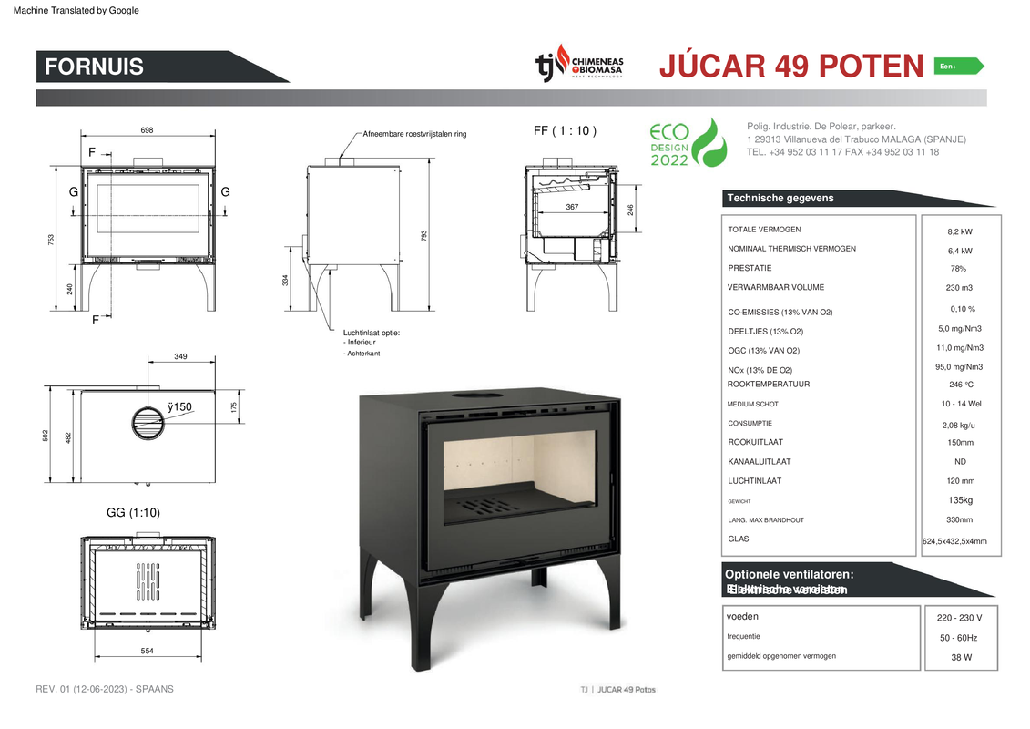 Houtoven van koolstofstaal: duurzaam en resistent ontwerp voor uniform en efficiënt koken. Roestvrijstalen oven: hoogwaardige materialen die reiniging en onderhoud vergemakkelijken. Vuurvaste stenen basis: zorgt voor een uitstekende warmteopslag en -verdeling voor optimaal bakken. Verwijderbaar voor eenvoudige reiniging: modulaire structuur die gemakkelijke toegang tot alle ruimtes mogelijk maakt. Vermiculieten binnenkant: efficiënte thermische isolatie die de warmte in de oven houdt. Deze Maestro Ferretero houtkachel is een uitstekende optie om uw huis efficiënt en ecologisch te verwarmen. Met een nominaal vermogen van 7,2 kW en een rendement van 86,33% zorgt deze robuuste koolstofstalen kachel voor aangename en langdurige warmte. Het heeft een roestvrijstalen oven en een vuurvaste stenen bodem voor een optimale verbranding. Dankzij het afneembare ontwerp is het rookafvoersysteem eenvoudig te reinigen. Daarnaast biedt hij primaire en secundaire luchtregeling om de verbranding te regelen, en een solide rookafvoer van 150 mm. Inclusief braadslede en grill. Met een gewicht van 178 kg en geschikt voor ruimtes tot 250 m² is deze kachel ideaal om uw huis efficiënt en milieuvriendelijk te verwarmen.